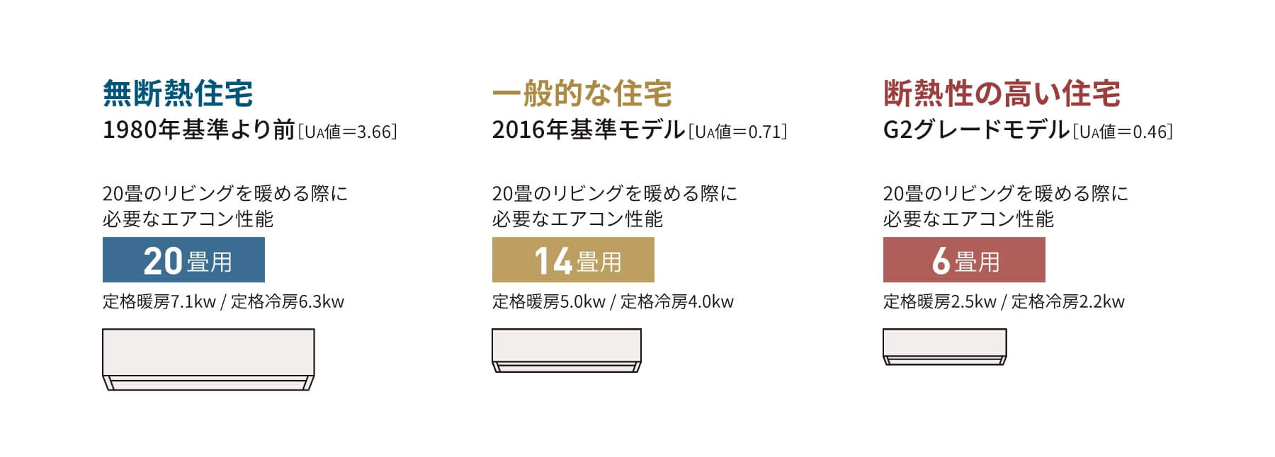 以下の表は右へ行くほど断熱性能が高いことを表しています。