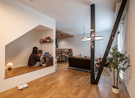 ヌックスペースの前は、「低いソファを置こうかな。それともテーブルの方がいいかな。」「買っておいたあのラグを敷こうかな。」と考えているところです。
