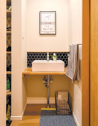 帰宅後にサッと手洗いできて清潔に保てるので、小さいお子様をもつH様ファミリーの暮らしには、ちょうどいい。