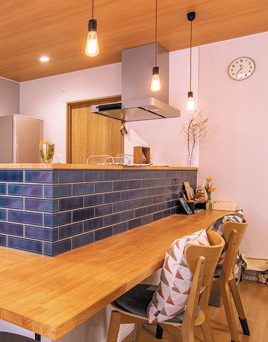 高さのあるキッチンカウンターを備え、料理中の手元が隠れます。あえてダイニングテーブルは置かず、食事もブレイクタイムもカウンターテーブルで。 ちょっとしたお家カフェ気分を味わえます。