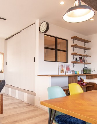 家族の存在を感じられるLDKに、小上がりの洋間を設けました。