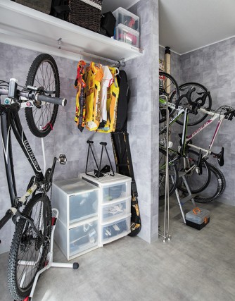 旦那様は、ロードバイクで町中を走ることがお好きで、ご夫婦一緒にロードバイクに乗ってお出かけすることも多いのだとか。そんなおふたりらしく、「広い土間を設けて、旦那様の自転車2台と奥様の自転車1台を置きたい」というご要望でした。