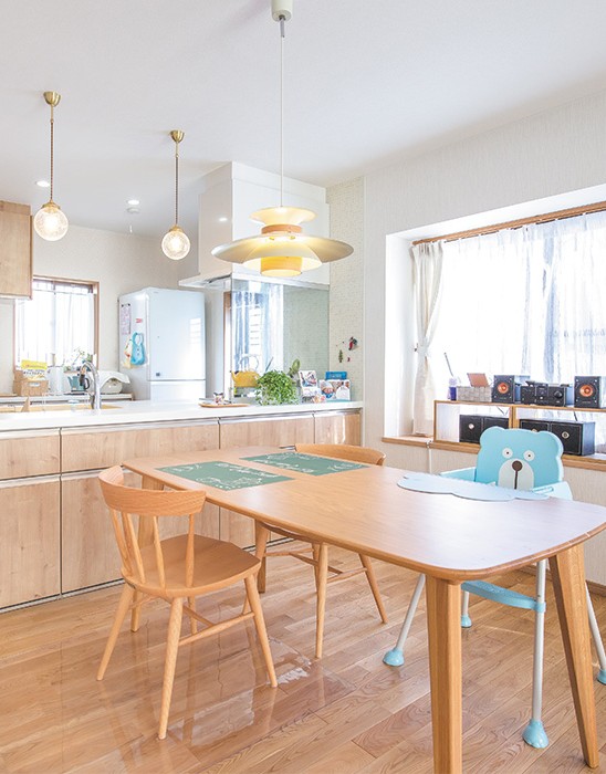 カップボードに収納したいものがすべて収まるため、不必要な家具を置かずに済み、すっきりキレイなLDKに。