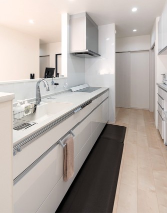 サテンホワイト×シルバーで合わせたパナソニックのL-CLASSキッチンは、上質で機能性抜群。