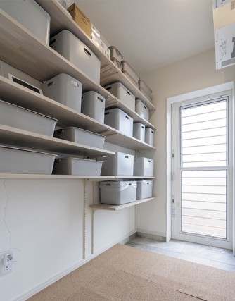 キッチンに隣接した、広めの1.4帖のパントリー。