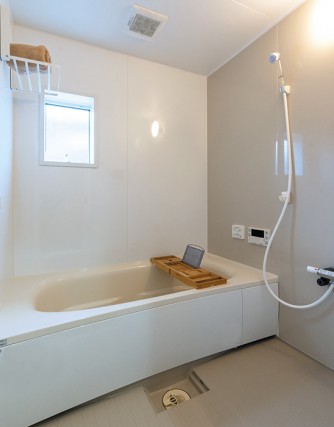 浴室は、パナソニックのオフローラ。オフニュートラルカラーの落ち着く空間です。
