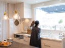 景色を眺めながら作業できるキッチンは、パナソニックのリフォムス。
