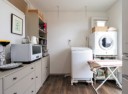 勝手口側には、洗濯機や室内用物干し(ホスクリーン)、ガス乾燥機(乾太くん)を設置。