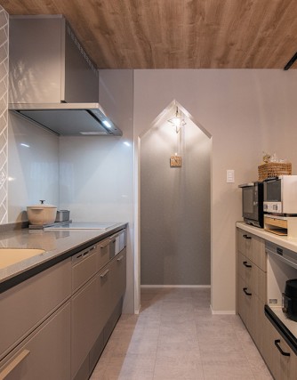 最初に決めたプランから工事に取りかかるまでの待機期間に、選んでいたLIXILキッチンのリニューアルが判明し、後続品のノクトで再検討することに。前回なかったブラウン系でコーディネートし、IHヒーター、深型食洗機を採用しました。