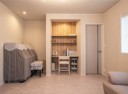 ランドリールームとファミリークローゼットの床材は、水に強いクッションフロアを選定。繊細なラメ入り石目のラスティタイル柄で、同じ色柄でまとめました。