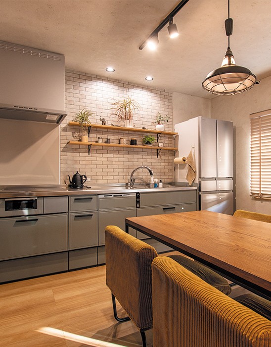 グレイッシュカラーやステンレスなど無機質な素材を使いながらも、ウッドやタイルなど自然素材を加えて、あたたかみや居心地の良さを醸し出しました。