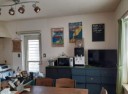 構造上ダイニングキッチンの抜けない壁は、ダイニングテーブルとリモコンの定位置に造り変えました。リビング側から見ると、ダイニングテーブルが隠れて、突然の来客にも安心です。