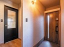 玄関からもLDKからも近い場所にトイレの位置を移動させ、建具はお子様の力でも開けやすい折戸を採用しました。