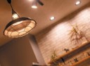 夜中、トイレに行くのを怖がるお子様のために、お子様が喜びそうな照明を選ばれたそう。ネイビーの壁に、多面体のランプシェード独特の光が広がります。