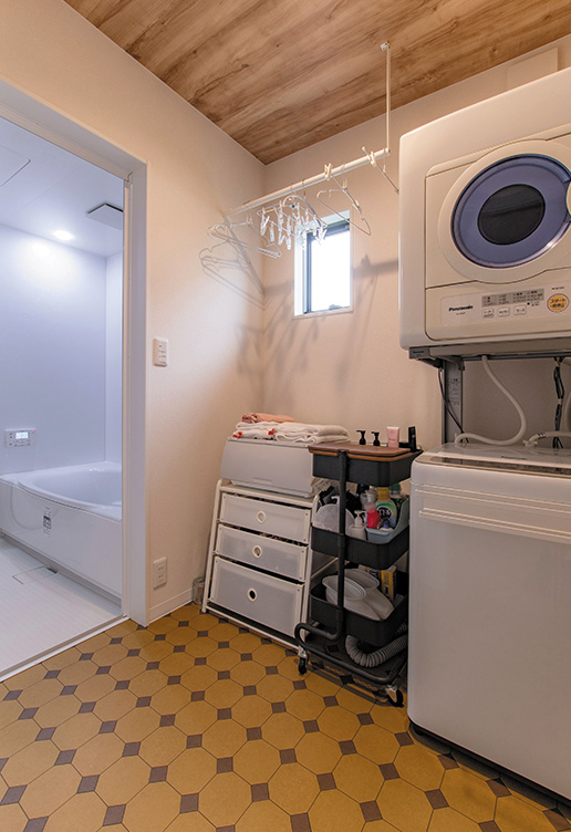 魅せるキッチンから洗面コーナーは近く、朝食を摂ってから出勤前の身支度をする動線もスムーズ。