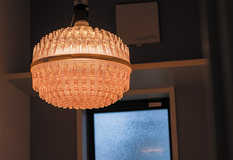 リビングの一角には小さな書庫を造りました。明かりを灯すと、さながらお気に入りコレクションのギャラリーのよう。