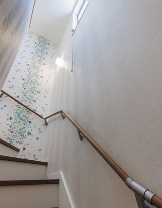 上に伸びていくようなヘリンボーン柄が空間をより高く見せます。