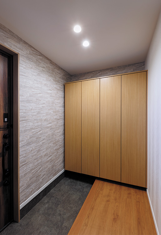 広くなった玄関にも馴染み、この先もご家族をお出迎えし続けます。