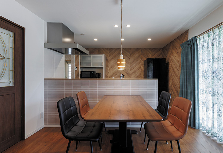 座り心地の良いダイニングチェアはあえて色味の違うものをセレクト。古き良きアメリカの雰囲気が高まり、印象的な雰囲気に仕上げました。