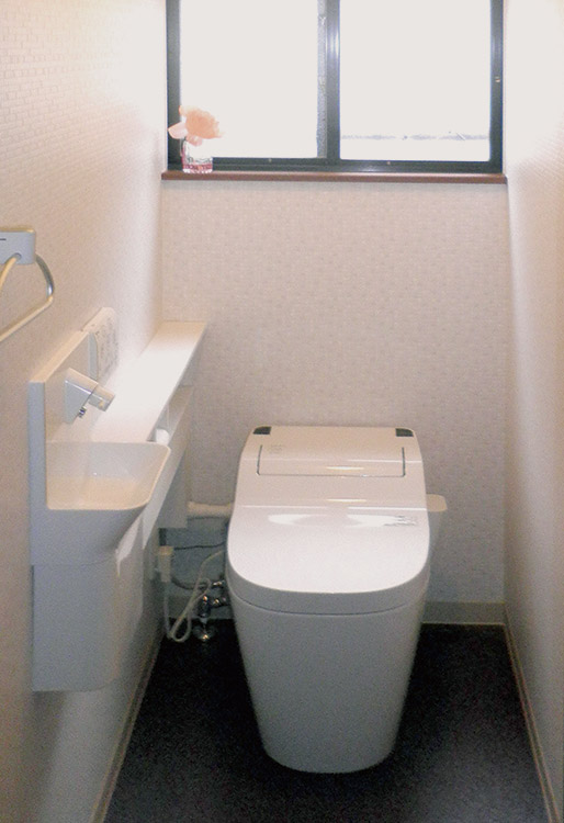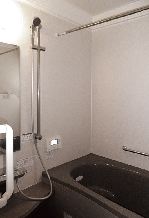 床にはノンスリップシートを貼って、ご高齢のお母様が滑りにくくなるよう配慮しました。