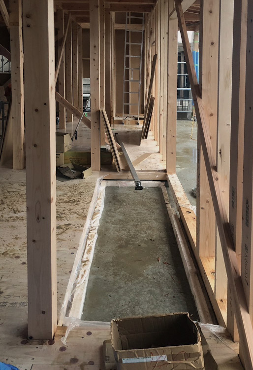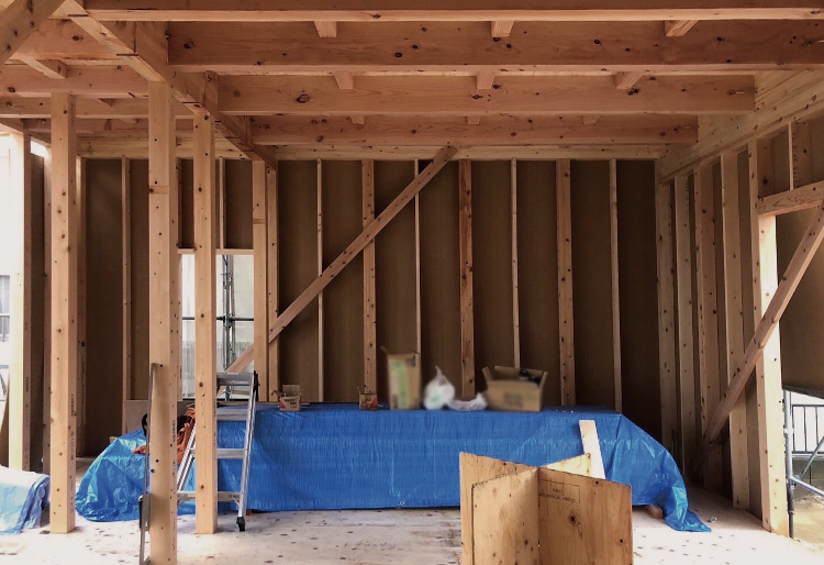 壁付キッチンだと作業途中が丸見えだったので、腰壁で対面キッチンを覆って、中が見えないようにしたいとのご要望でした。