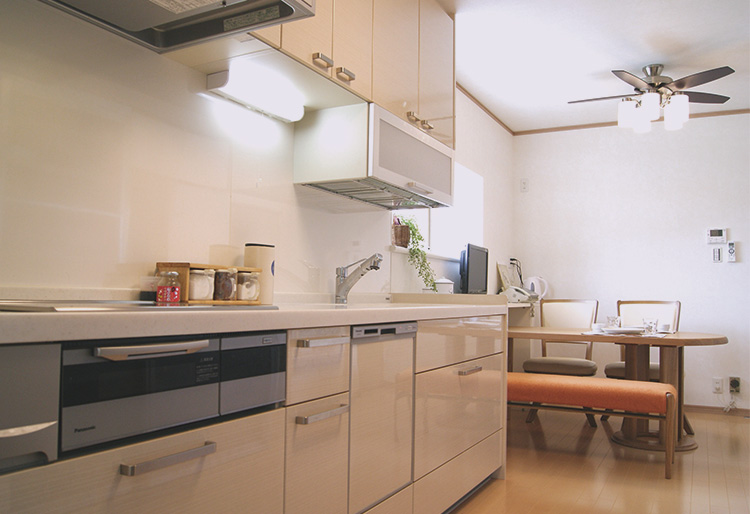 タッチレス水栓、遠赤Wフラットラクッキングリルなどの機能面、家族4人分の食器はすぐに仕舞えて、さらに使いやすくなりました。