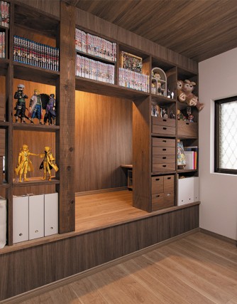 小上がりに座って本を読んだり、ヌックのデスクスペースで作業したりと、いつもの日常から少しだけ離れて、心ゆくまでお気に入りに囲まれる場所ができました。