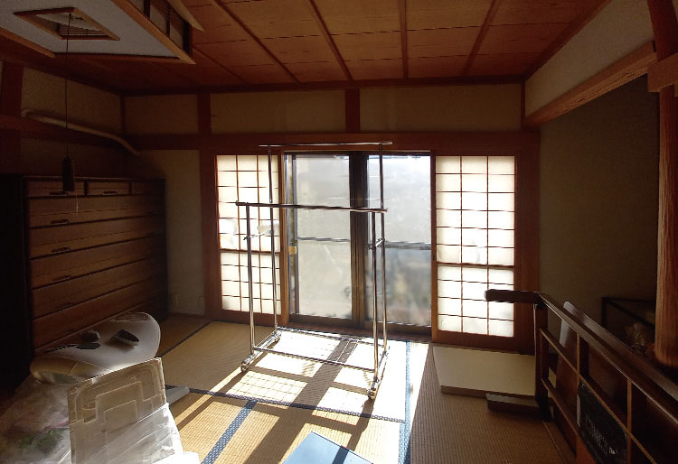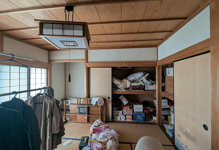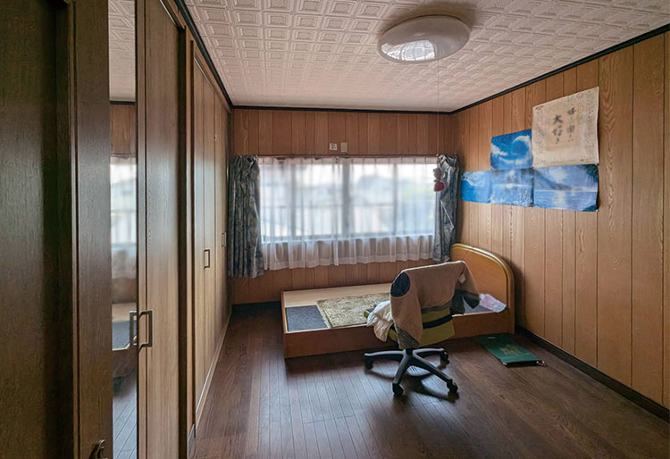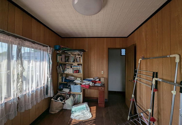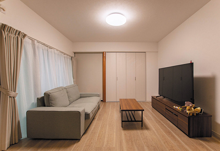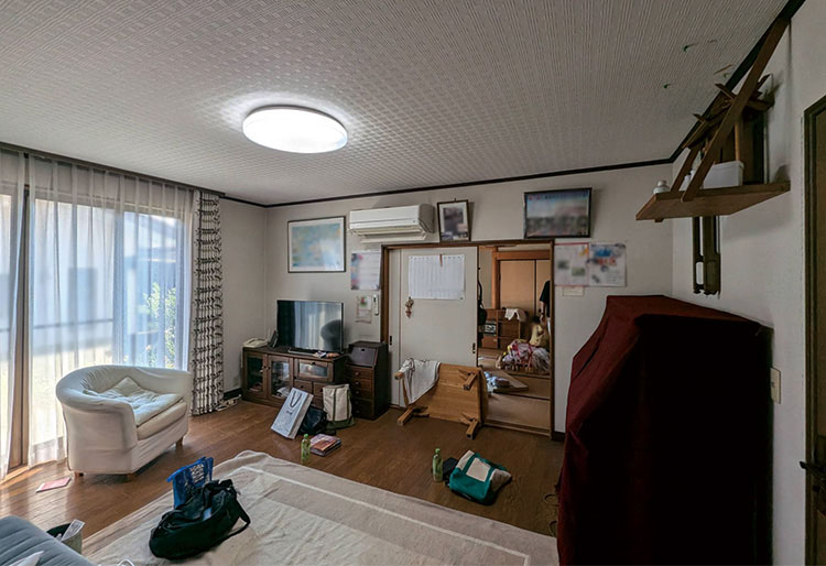 もともと和室で、床の間だった場所はロールスクリーンで仕切れる収納に。立派な床柱は承継して、この先のご家族を見守り続けます。