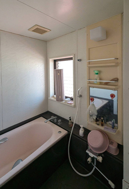 かつては小階段を上った先に洗面室と浴室がありました。ご両親が住んでいた頃は、洗濯カゴを持って物干しスペースまで上り下りしなければならず、あまりにも不便だったそう。