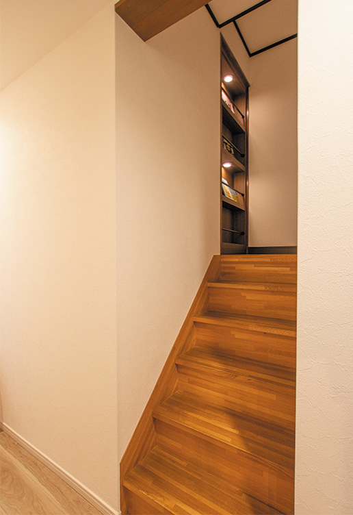 さらに、トイレやリビングに近い廊下に埋め込み収納を設けました。近くに置いておきたい日用品を仕舞えて、収納ボックスなどを必要以上に増やさずに済みます。