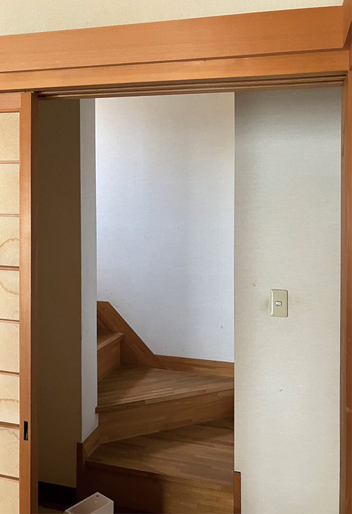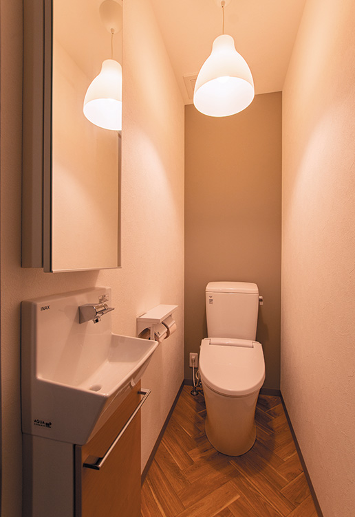 階段を上らずともトイレに行けるよう間取りを見直して、鉤状の押し入れだった場所にトイレを設けました。