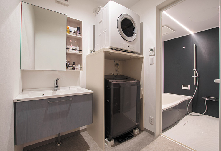 住まう人が娘様ファミリーに変わり、間取りや洗濯動線を見直して、家事スペースはキッチン廻りに集約しました。